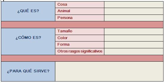 Para finalizar comentaré una estrategia que facilita la estructuración paulatina de las descripciones. Consiste en realizar preguntas que guíen al alumno para realizar la descripción que sean contestadas de una en una. Cuando tengamos todas las respuestas (puede ser por escrito en tarjetas, libreta o pizarra o puede ser con pictogramas o fotografías representativas) le ayudamos a ordenarlas y a “narrar” la información que nos ofrecen componiendo así una descripción. La ayuda de las preguntas se desvanecerá paulatinamente hasta que el alumno sea capaz de organizar la información por sí mismo.