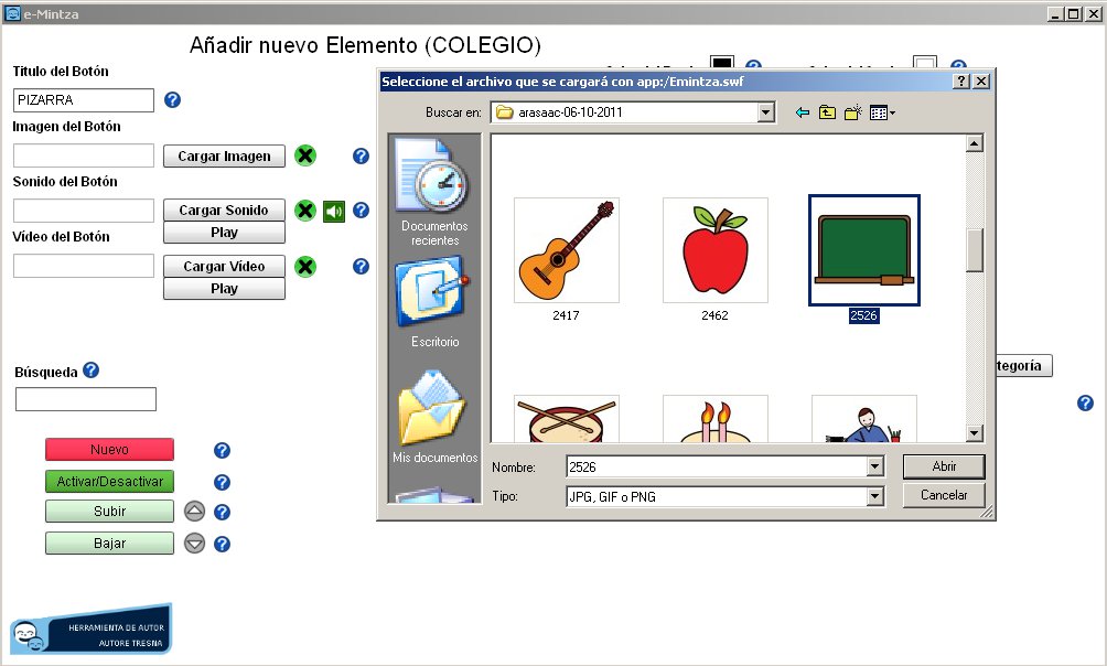 E-mintza es un proyecto que está iniciando ahora su andadura y me ha sorprendido, a la hora de llevarlo a la práctica la rapidez en adquirir su manejo por parte de una persona con TEA. Además de su utilidad como comunicador me parece interesante su uso para trabajar la estructuración de frases al permitirnos la creación de oraciones a través del uso de elementos de diferentes categorías. Próximamente podré enseñaros parte de esta experiencia en vídeo. Hasta entonces os dejo algunas capturas de pantalla de la aplicación y de las pantallas de la herramienta de autor: