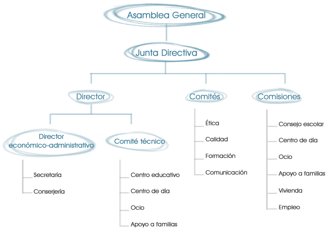 Para el mejor funcionamiento de la asociación, Pauta canaliza la participación a través de Comités y Comisiones como podemos observar en el siguiente organigrama, con el fin de aportar ideas de mejora y asegurar la coherencia del funcionamiento de los servicios: