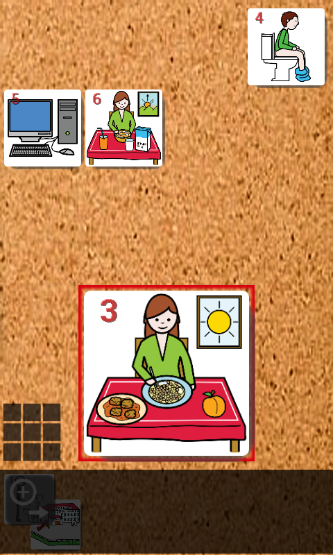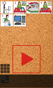 PictogramAgenda es una sencilla aplicación que emplea imágenes de ARASAAC aunque permite también añadir imágenes de todo tipo a la base de datos. La interfaz nos muestra un tablón de corcho con una secuencia de pictos pequeños que indica las actividades a realizar y un recuadro central de mayor tamaño que muestra el momento en que nos encontramos.