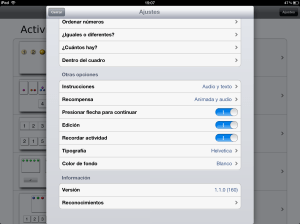 Además de las actividades descritas Números Especiales nos ofrece diferentes opciones de configuración permitiéndonos elegir el fondo, tipografía, tipo de recompensa, modo de presentación de las instrucciones y muchos otros aspectos. Igual que con sus hermanas Palabras Especiales e Historias Especiales, nos ofrece la posibilidad de configurar diferentes perfiles de usuario que pueden ser exportados e importados lo que puede resultar muy útil en el caso de iPads compartidos en las aulas y también para compartir en el hogar con los dispositivos familiares.
