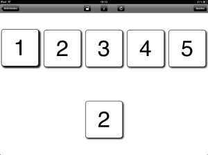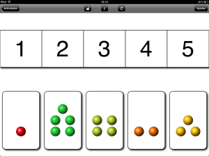 - Emparejar números. En esta actividad se muestran una serie de tarjetas fijas y una tarjeta móvil que la persona tiene que emparejar con la que le corresponda. Seleccionando también entre los números 1 y 20, puede elegirse el contenido de las tarjetas que puede ser el mismo para las móviles y las fijas o diferenciados en función del objetivo de trabajo, de este modo podemos mostrar números, los nombres de los números en mayúscula o en minúscula, bolas, relojes o dominós.