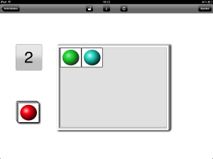 - Contar. Muestra objetos en pantalla (bolas o animales) que van «contándose» (aparece el número y una voz que lo nombra) a medida que la persona va pulsando sobre ellos, ofreciendo un modelo verbal y visual adecuado para ir aprendiendo este proceso. Se puede elegir la cantidad de elementos a contar (entre 1 y 20), si aparecen en pantalla ordenados o esparcidos, si se muestran en orden (primero se cuenta un elemento, luego dos y así sucesivamente) o de forma aleatoria y el momento en el que se reproduce el audio de la pantalla (antes de contar o al tocar al objeto).
