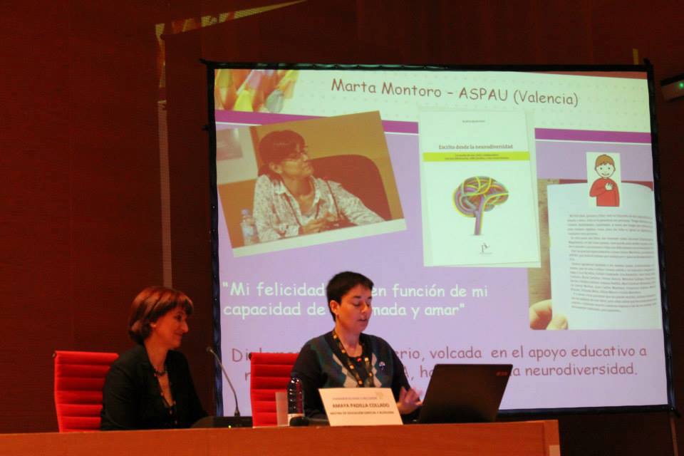 Abrió la jornada Amaya Padilla, maestrita y bloguera como la que escribe estas líneas, que nos presentó su experiencia con la inclusión desde los diferentes centros en los que ha trabajado. Amaya en su intervención resaltó el papel que jugamos en la inclusión los recursos educativos específicos, aspecto muchas veces desconocido y que también es importante conocer; y también nos abrió una puerta a los múltiples recursos a los que podemos acceder a golpe de click, haciendo especial mención a todas aquellas familias que con su presencia en la red, nos enriquecen con sus experiencias y nos acercan a la realidad que viven día a día.