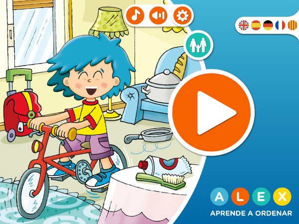 - Oficios: Bombero, médico y cocinero son los oficios elegidos para ordenar con Álex, nuestro protagonista de pelo azul.