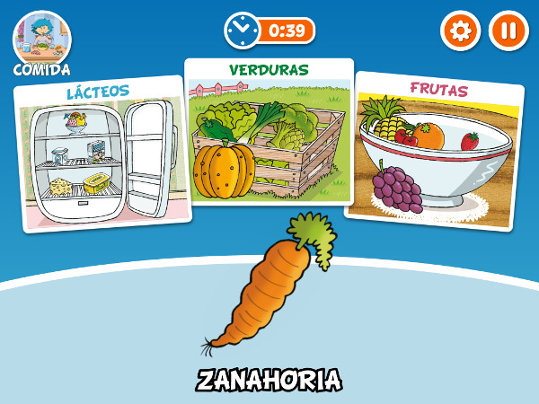 - Comida: Aprende a comer sano diferenciando frutas, verduras y lácteos.