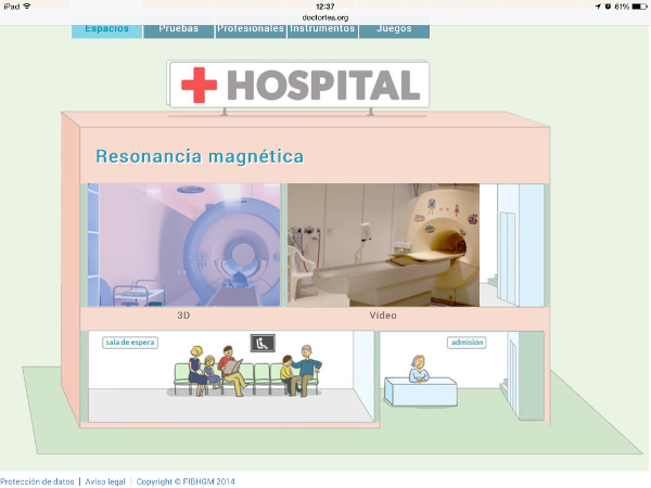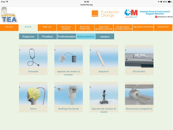 La página web presenta un hospital, tomando como modelo el programa AMI-TEA del Hospital Gregorio Marañón de Madrid y ofrece materiales audiovisuales para comprender bien todo lo que va a suceder en los distintos Espacios del hospital, cómo son las Pruebas que se pueden realizar, cuales son los Profesionales que van a atender a las personas y con qué Instrumentos se van a realizar las exploraciones.