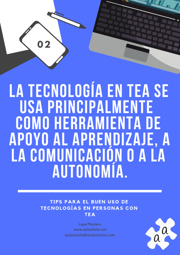 Es innegable que la tecnología brinda numerosas posibilidades a la persona con TEA, pero los tres usos más frecuentes que encontramos son los que se muestran en la imagen: